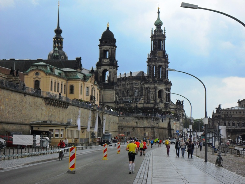 Am Samstagvormittag nehmen wir im World Trade Center Dresden die Startunterlagen in Empfang. Gisela und meine Tochter Chantal sind auch wieder mit von der Partie. Dieser Marathon bietet sich perfekt an für Begleitpersonen: Nichtläufer können neben der Laufstrecke mit dem Dampfschiff in Richtung Dresden fahren.