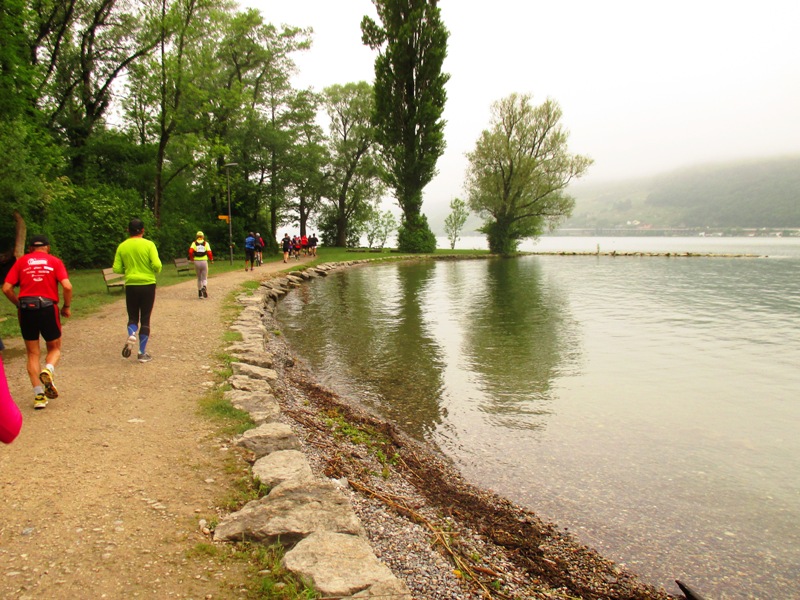 Die Insel verlassen und noch 20km bis nach Biel. Seit über 1 Stunde schmerzt mich mein Fuß, und der unebene Boden und die Steine sind da auch keine Hilfe. Ab und zu sehe ich mal einen Läufer – entweder überhole ich oder ich werde überholt. Aber die Anzahl kann man an einer Hand abzählen. Also ganz schön einsam. Irgendwie bin ich heute auch sonst nicht so gut drauf und so fällt meine Motivation so ziemlich in den Keller. Alle meine Tricks helfen nicht weiter und bis nach Biel ist es noch weit.
