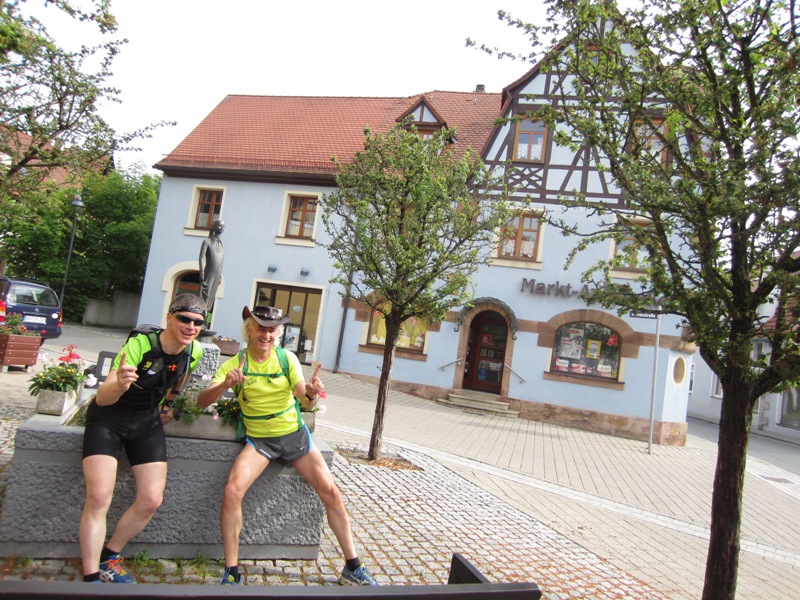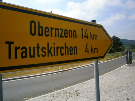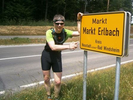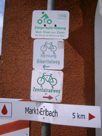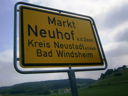 in Hagenhofen vor uns ein Schild, dass uns Markt Erlbach ankündigt. Es