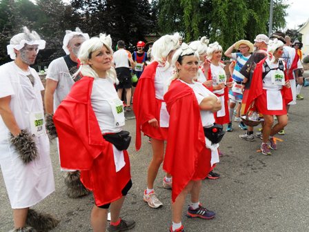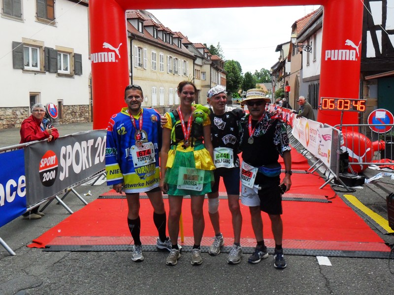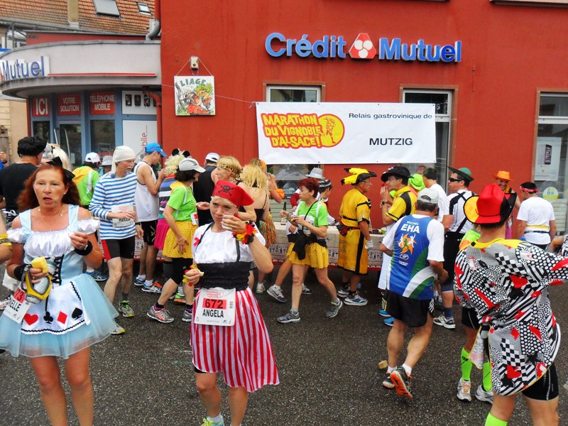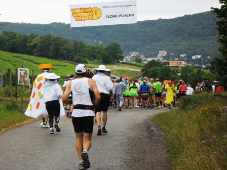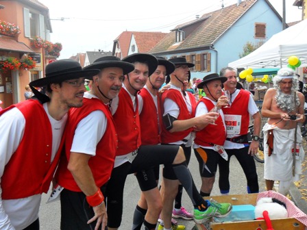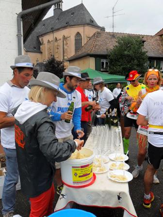 Anfangs als kleine Version des "längsten Marathons der Welt" in Berdeaux/Medoc, ist der Elsass-Vignoble längst aus dessen Fußstapfen getreten. Bunter, erfrischender und viel kulinarischer. -  Wer unter 6 Stunden läuft ist selbst schuld.