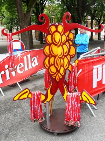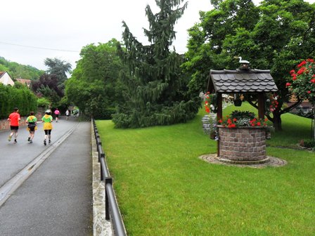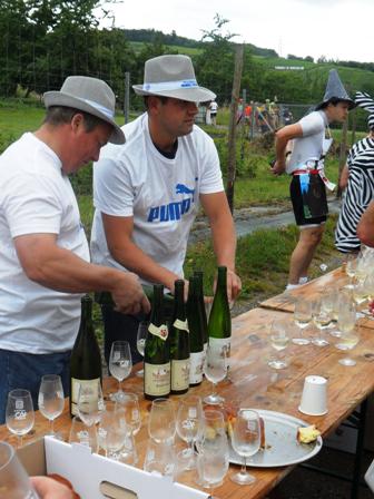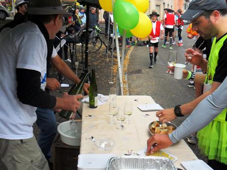 Über die Qualität der Weine kann ich leider keine Auskunft geben – ich habe sie nicht versucht, sondern mich ans Wasser gehalten. Wer hier teilnimmt muss damit rechnen, mehr Kalorien zu sich zu nehmen, als er verbrennt. Für die hier wirklich einzigartige Stimmung, die an Karneval erinnert, und die noch viel schönere Landschaft kann man das schon mal in Kauf nehmen, oder? Aber um persönliche Bestzeit aufzustellen, kann ich diesen Lauf nicht empfehlen.