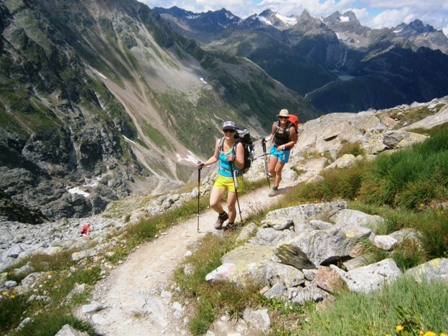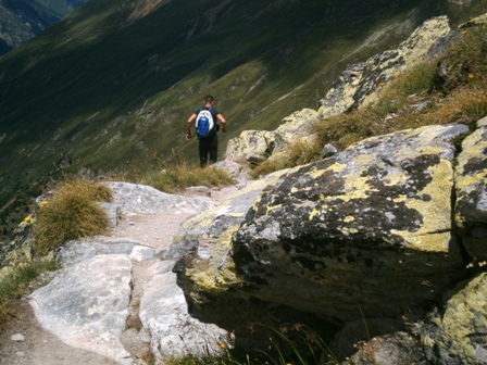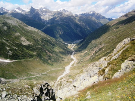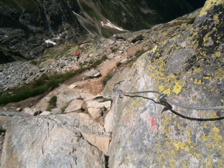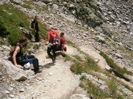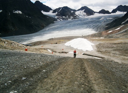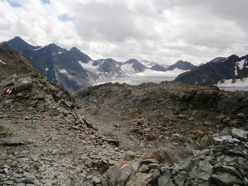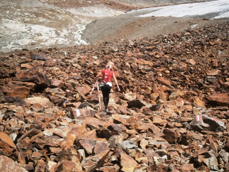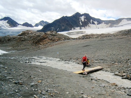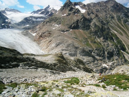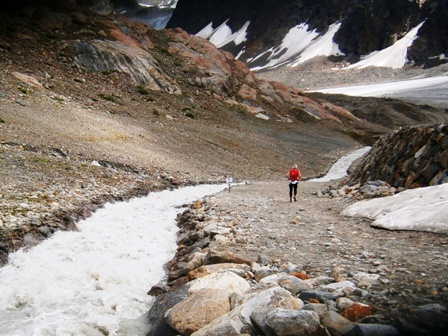So, nun geht's ebenso steil wieder hinab, immer den Gletscher im Blick