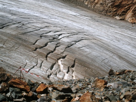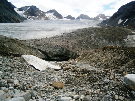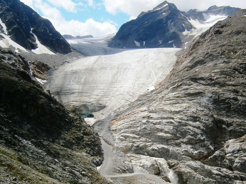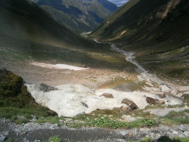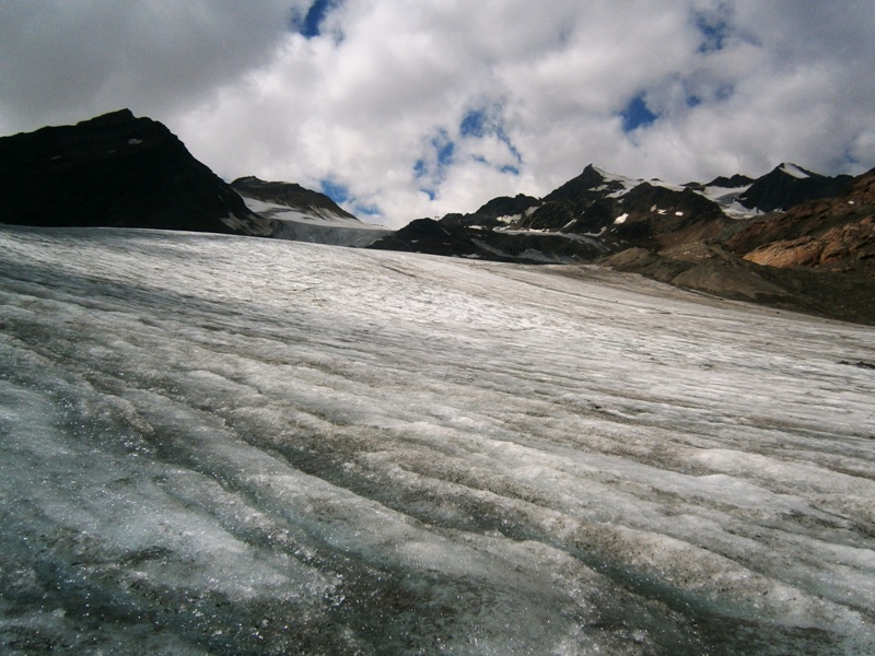 ...der ganze Gletscher von vorne gesehen und so nah (unter uns rauscht der tosende Bach)