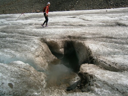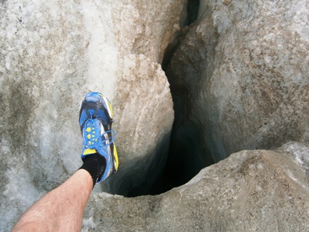 Laufen auf dem Gletscher mit den Dingern am Schuh ist Spaß!