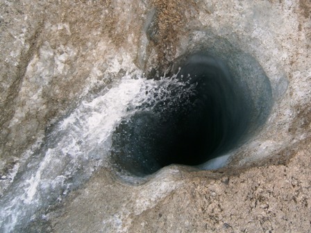 ...und hier fließt sogar Wasser ein (ich sehe 30m bis zum Grund)