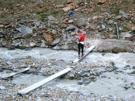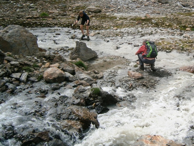 Wie kommt man trockenen Fußes über diesen Gletscherbach? (siehe Video)
