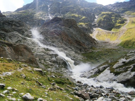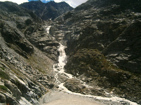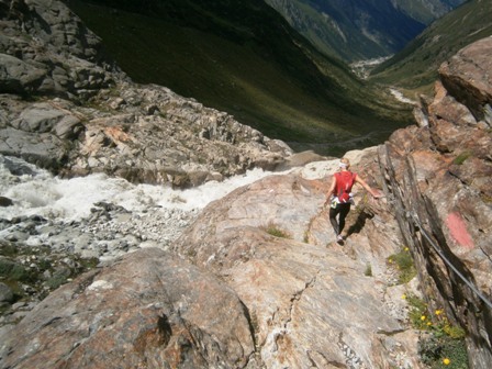 Abstieg direkt neben dem Gletscher-Wasserfall