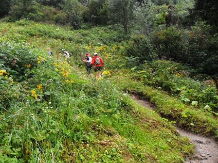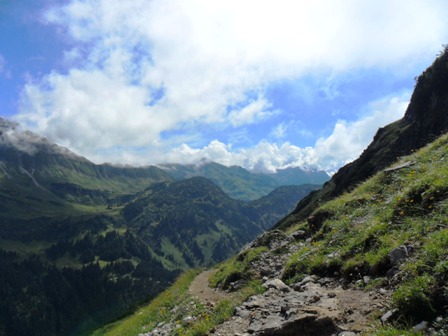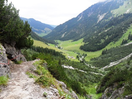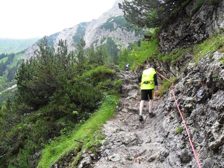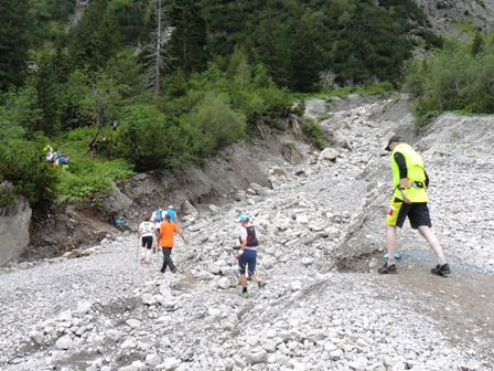 Die Strecke verläuft zunächst in umgekehrter Form wie gestern. Bei Tageslicht und ohne Regen ist der Weg zur Bärgunttalhütte viel freundlicher
