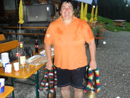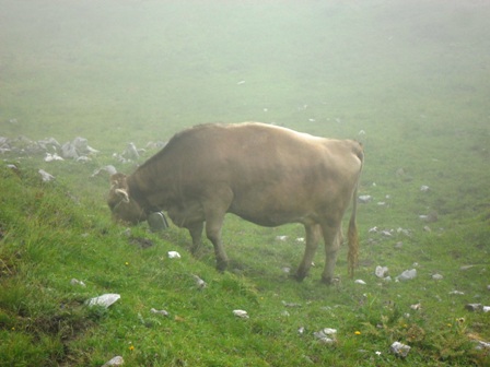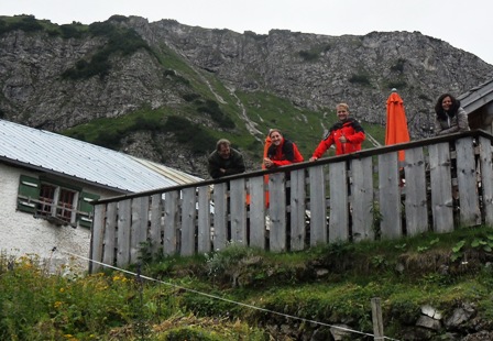 Auf die Wirtin der Bärgunttalhütte ist Verlass, sie begrüßt uns trotz strömendem Regen mit Kuhglockengeläut. Danach geht es nur noch 2km...