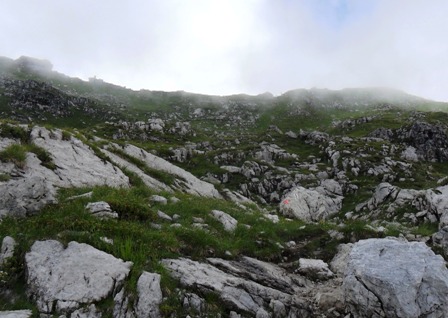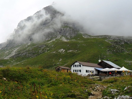 Widdersteinhütte: Leider keine Aussicht, die Wolken hängen tief