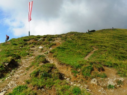 Die Freude des Bergablaufens währt nicht lange. Über einen Grashügel und schon geht's wieder nach oben