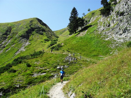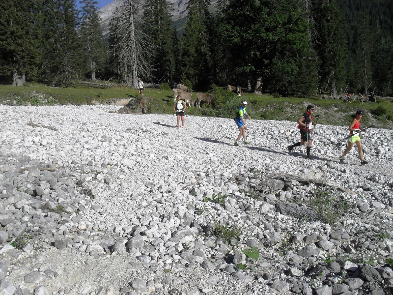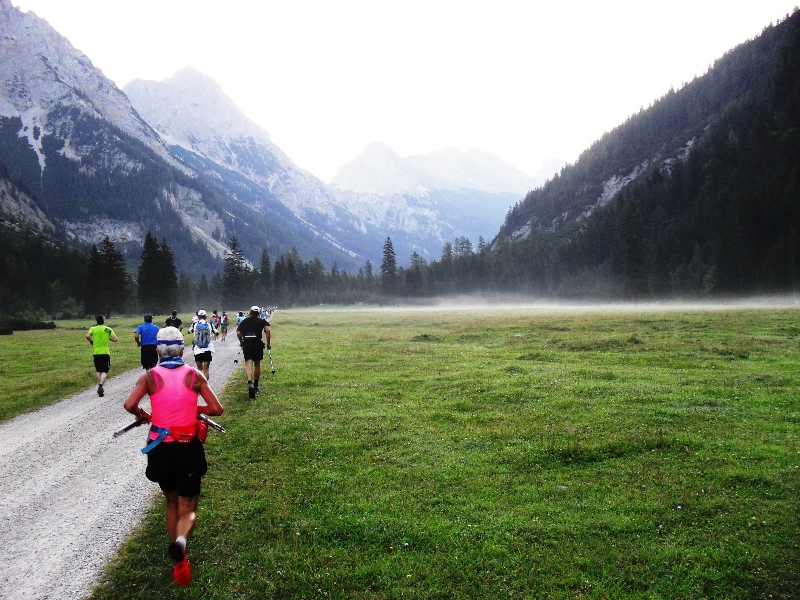Noch in der Dunkelheit um 6:00 Uhr früh wird das Starterfeld mit einem lauten Kanonenknall auf die Strecke geschickt. Vom Start in Scharnitz (967 m) geht es 52km quer von West nach Ost durch das Karwendelgebirge bis zum Ziel in Pertisau (932 m) am Achensee. Dabei gilt es 2.281 Höhenmeter zu bewältigen, vorbei am bekannten Karwendelhaus, über den Kleinen Ahornboden und die Falkenhütte bis zur Eng (1.227 m). Nach 35km ist hier das Ziel für die Teilnehmer, die die kürzere Route gewählt hatten.
