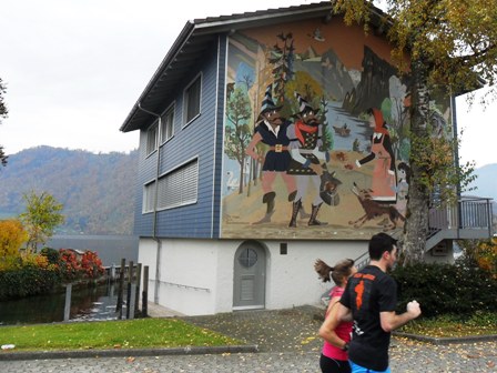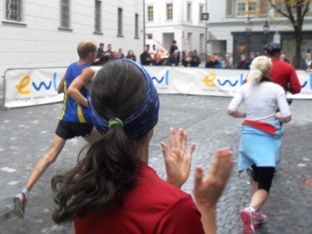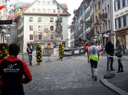 Futtern und Trinken war bestens: Wasser, Iso, Banane, Riegel, Gel... für mich völlig ausreichend. Nur die für Cola-Fanatiker fehlte ab km30 Cola. Urige und herzige Schweizer Sprüche gab's überall, nur keinen Dolmetscher dazu so im Vorbeilaufen ;-)  Meine Highlights waren der Streckenabschnitt über die Brücke und durch die Altstadt, was gerne noch länger dauern dürfte. Landschaftlich war der Uferweg echt schön.