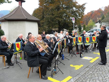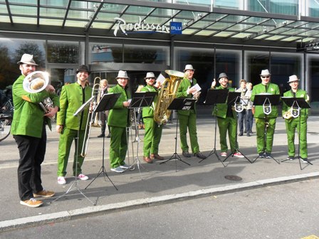 Den Anstieg erleichtert uns die Luzerner Guggenmusik