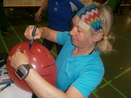 Bernadette macht ihren und unsere Zugläuferballons fertig |