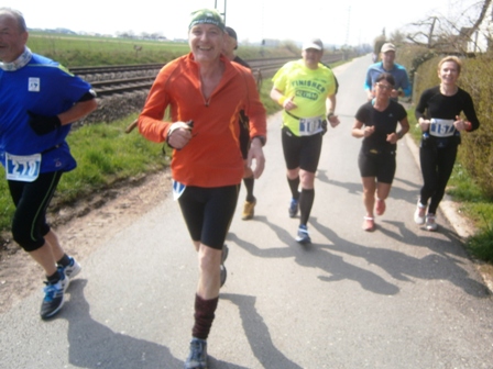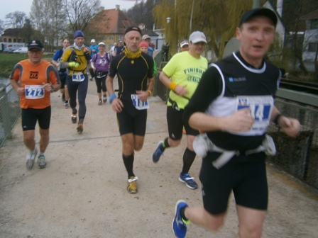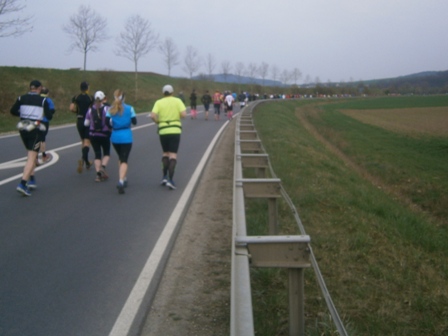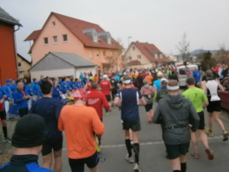 Bei km 13 stoßen wir auf die dicken Horden der 1.000 Halbmarathonläufer