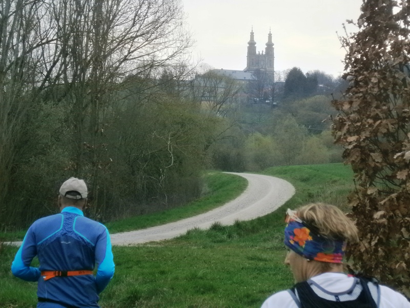 weiter auf Radwegen + etwas Strasse. Bei km16 kommt Anstieg Nr. 2, Basilika Vierzehnheiligen. Auch hier gehen