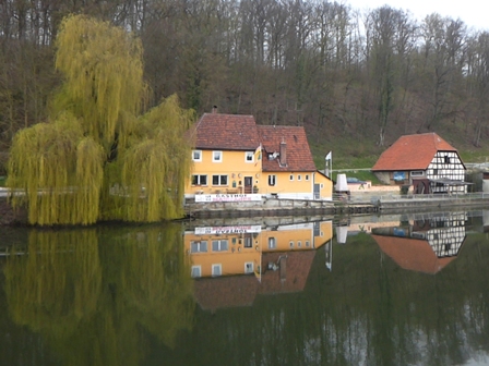 geht's auf Strasse + Forststrasse wieder runter, über den Main (mit Wehr) und