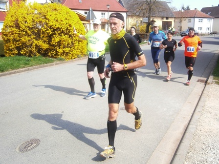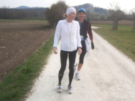 Waldanstiegs bei km 4-5 bremse ich und rate zum flotten Gehschritt. Ob