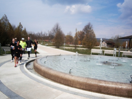 Um die Wasserfontaine des Kurparks, nur noch 1km |