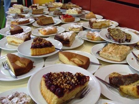 mich gleich weiter eine Runde, mit Blick auf das lange Kuchenbüffet. Ups,