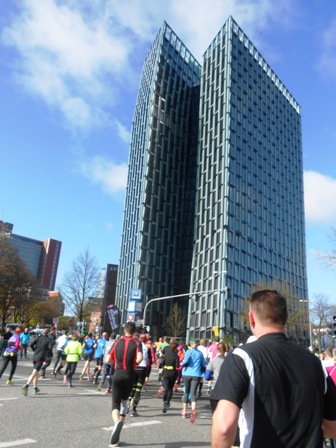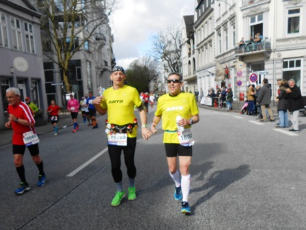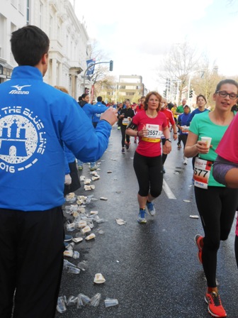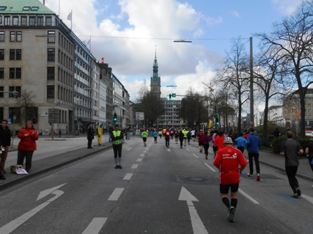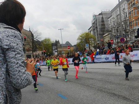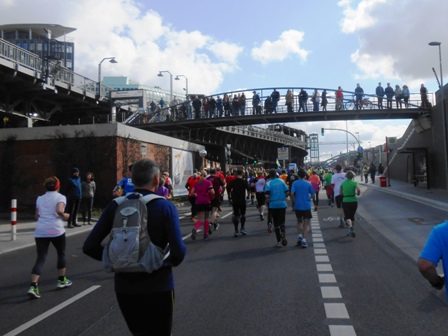 ersten 21 km sind ein Fest und Hamburg präsentiert sein bestes Wetter.