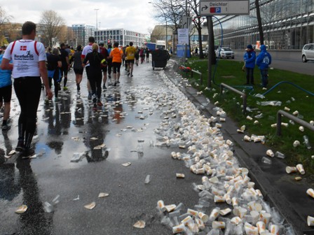 ...nehme ich Wasser. - Alle 3,5km gibt es nun Verpflegung |