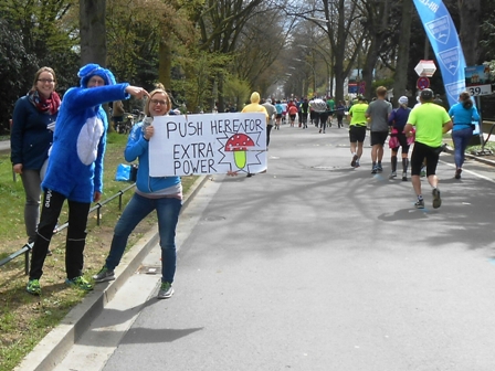 Ein paar Läufer versuche ich unterwegs zu motivieren und begleite sie,