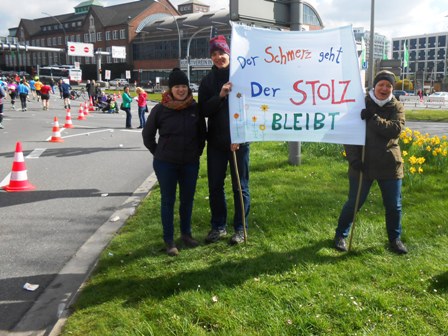 Zuschauer leben. Sie feuern stetig auch die langsameren Läufer an. Ich