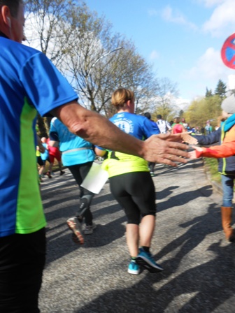 seine Frau musste bei km 17 wegen ihrem Knie aufhören. Oder einige