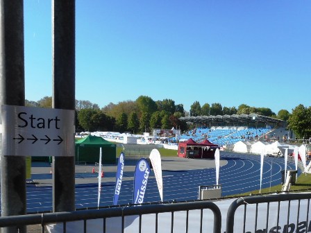 und dem Start/Ziel-Bereich. Start ist 08.45 Uhr (Halbmarathon 10:20