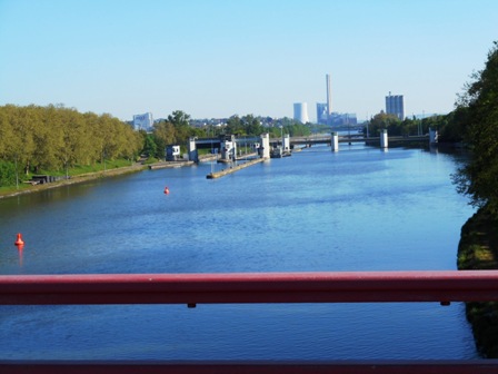 Brücke geht die Temperatur noch, 15°C und wir laufen am Neckar entlang,