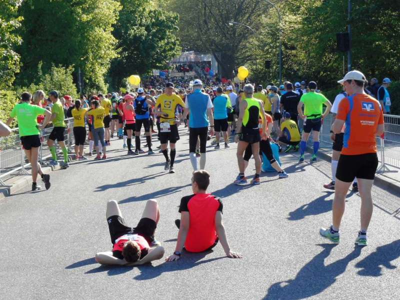 Plötzlich laufen wieder sehr viele Läufer um uns herum.