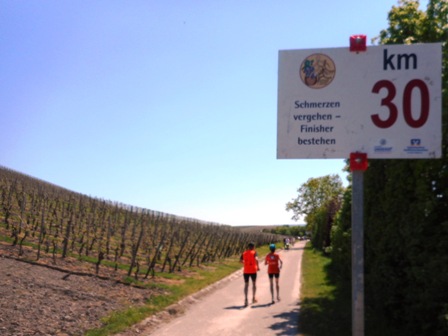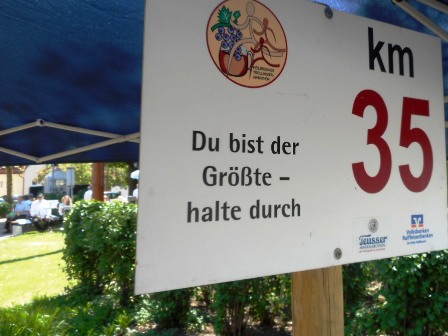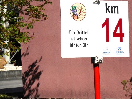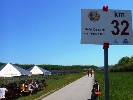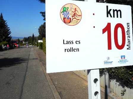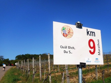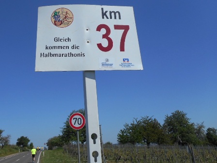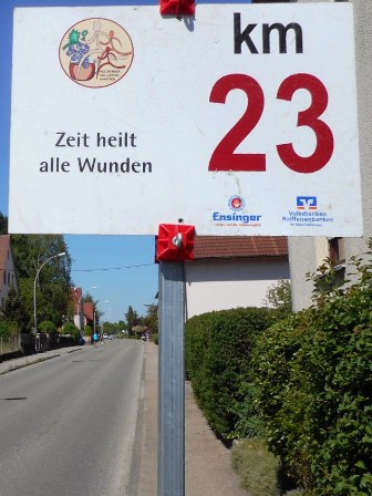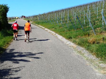 zurück nach Heilbronn sind hart und ziehen sich, entlang den Weinbergen mit lange Geraden. Hier können wir einige Läufer einsammeln, für die