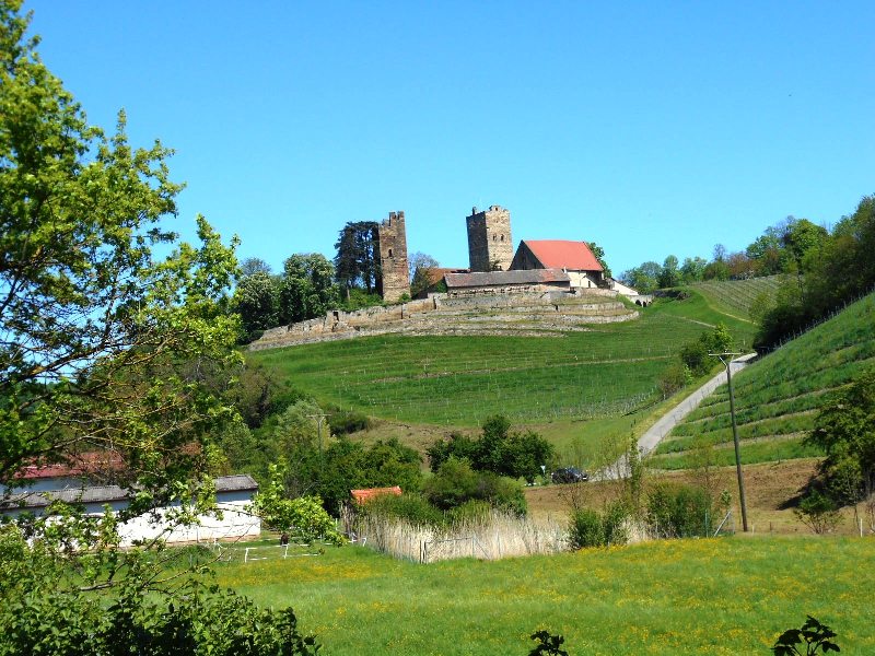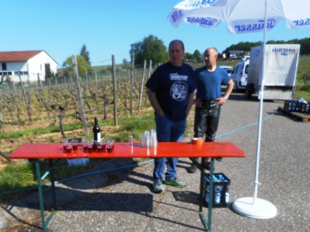 genüsslich seinen ersten Trollinger Wein zu sich, als wir oben am Berg
