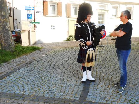 Trompeter, ein Dudelsackspieler und ein Alphornbläser zu unserer