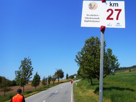 Strecke verteilt und es gibt unterwegs so gut wie keinen Schatten. Dafür ab km 10 aber alle 2,5km eine
