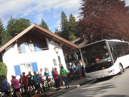 Bus Grainau-Mittenwald. Unser 40km-Trail-Start ist um 10:00. Die