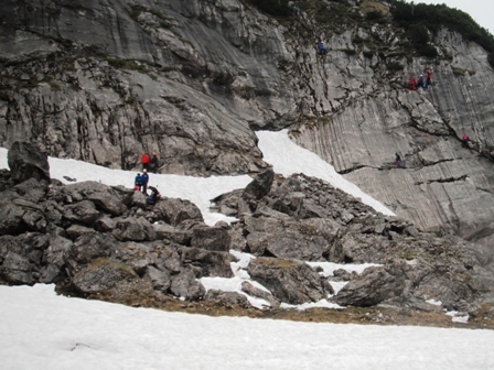 Schnee, Felswänden und dem wolkenlosen Blick ins Tal. Schön war es auch, in die enge
