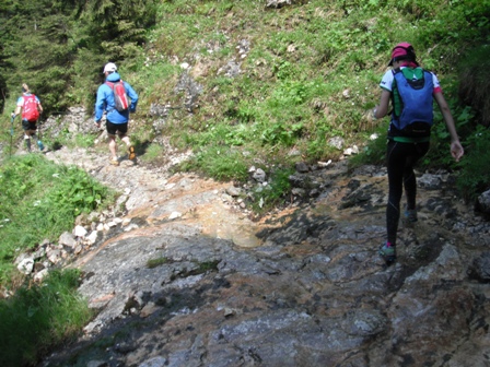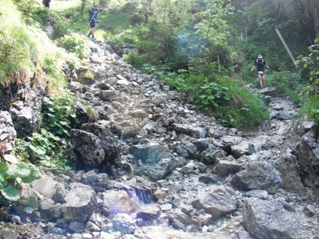 abwärts, viele Steine am Weg |