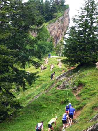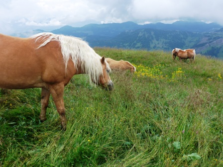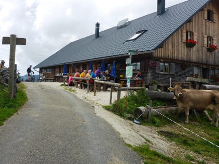 warten auf uns an der Alpe, und viele lustige Wanderer. Und