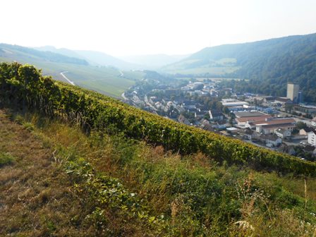 Die sonnige Talseite ist voll von Weinbergen