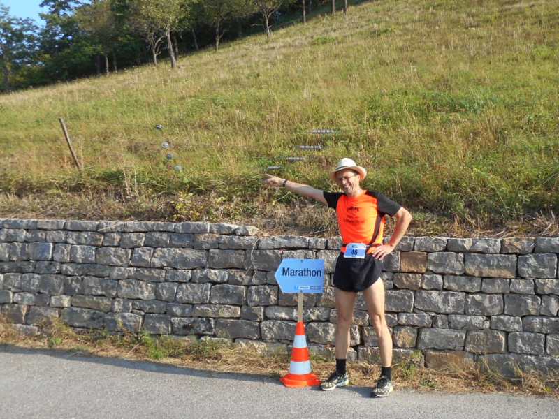 4) Nach km35 noch einige Höhenmeter einbauen (Gehpausen bergauf sind auch eine willkommene Abwechslung zum eintönigen Laufen auf ebener Strecke)