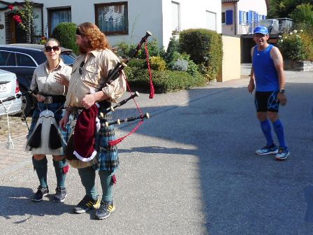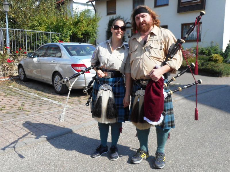 Schotten mit Dudelsack: Traditionell jedes Jahr hier, und jetzt auch mit Instrument hitzepausierend unter dem Arm