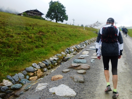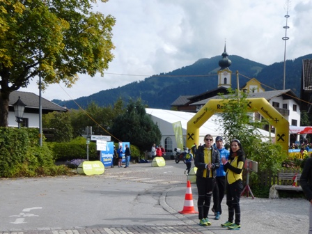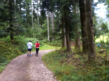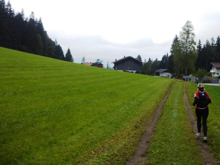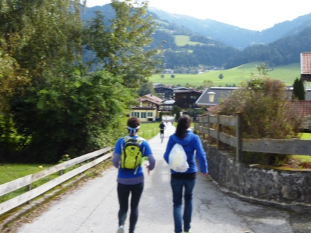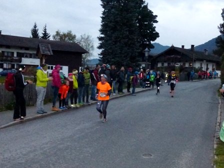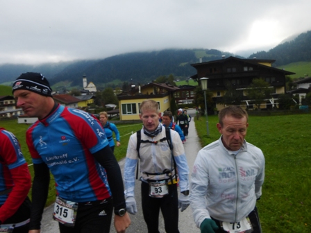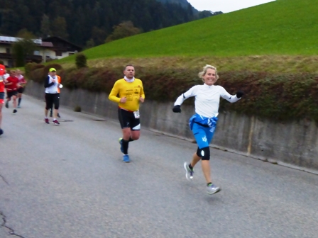 Läufer vorneweg. Es geht durch Söll und schnell in den Trail, toller