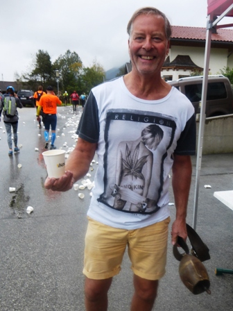 einfach stundenlang zu stehen, den Läufern Verpflegung zu reichen und