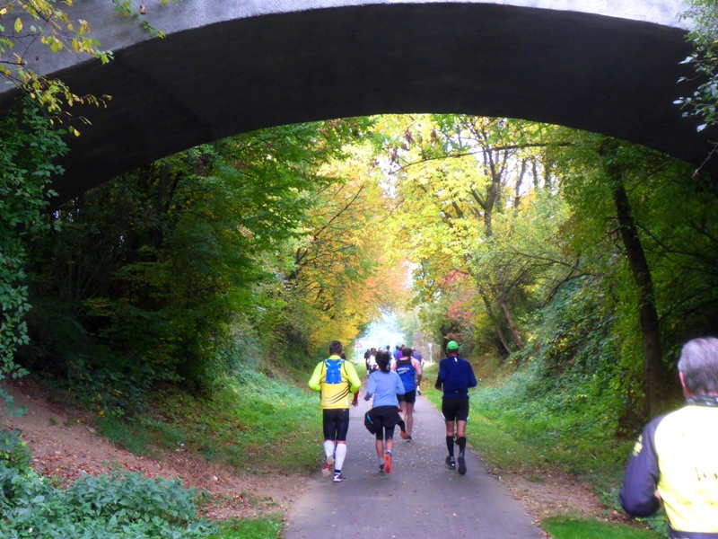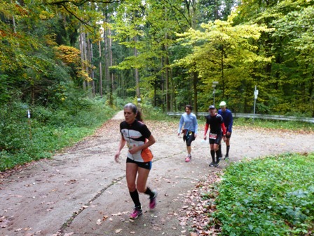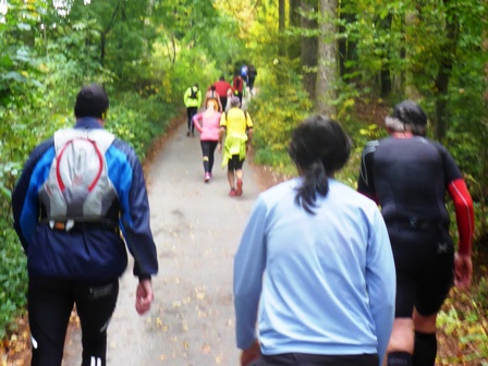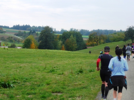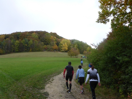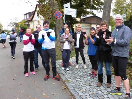 Unser Laufwetter ist heute super: Kein Wind/Regen/Nebel und der Boden nicht nass. Bei 9°C reicht Langarm, aber die meisten starten dennoch mit Jacke.