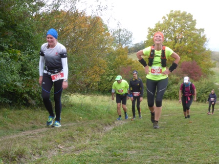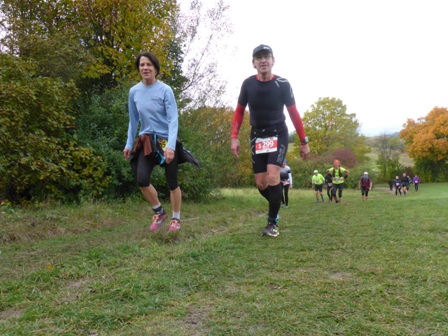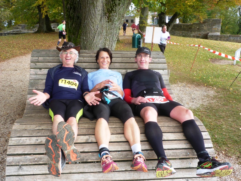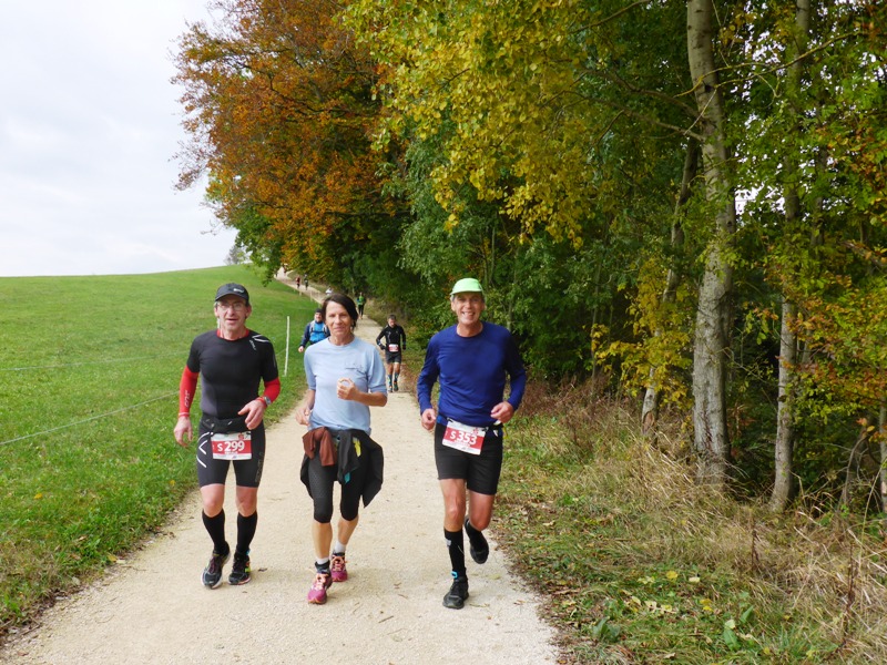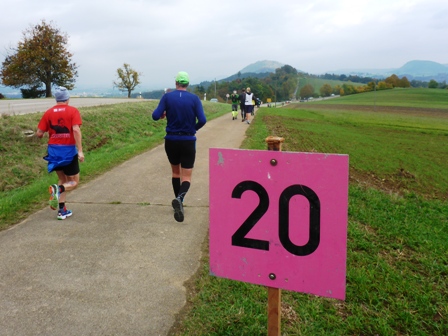 Tradition ist Tradition: Wir beginnen wieder als Letzte. Wir plaudern und setzen uns auch schon mal zum Ausblick auf einen Bank. Alle Verpflegungsstopps genießen wir, bleiben 2min stehen (oder auch mal 4min), für warmen Tee (Danke Sonja Kast an VP-Stelle km12 !).