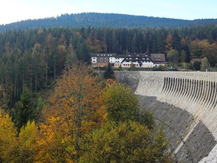 Die Schwarzenbach-Talsperre mit 400m Damm (1922-1926 gebaut)