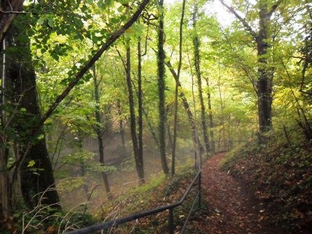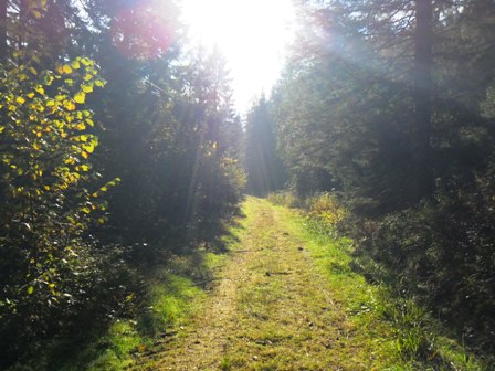 …und von dort aus in den Wald. Auf dem schönen Wanderweg fällt der Anstieg leicht